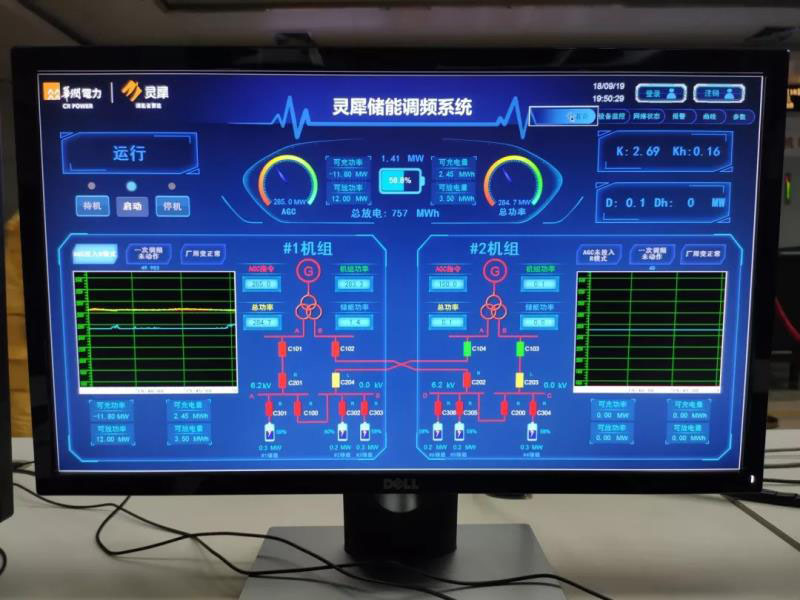 系統(tǒng)采用華潤電力智慧能源公司自主研發(fā)的靈犀能量管理系統(tǒng)(LEMS),分段接入兩臺機組廠用6kV母線,該項目可同時配合單機、雙機三種運行模式下進(jìn)行輔助調(diào)頻,項目投運后聯(lián)合調(diào)頻性能和里程均得到顯著提升。
