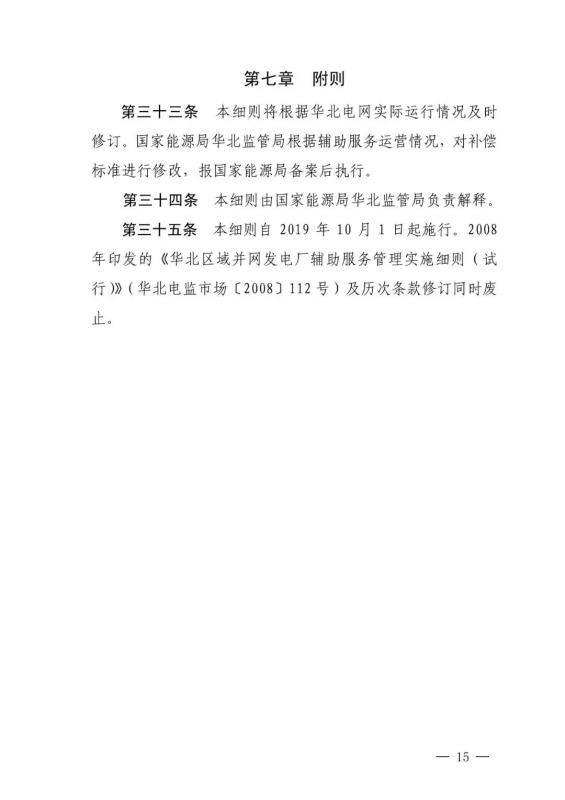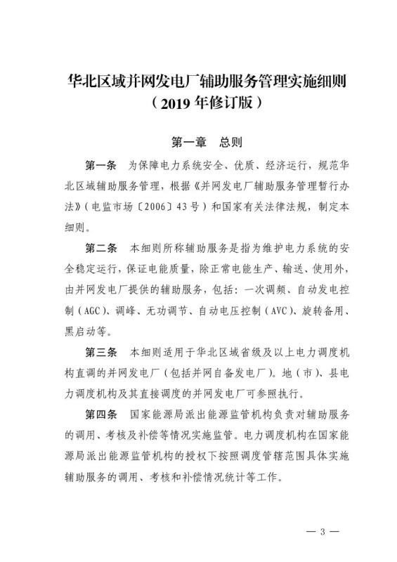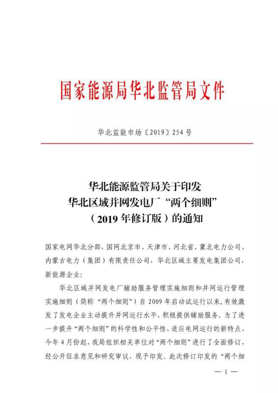 中國儲能網(wǎng)訊:9月25日,華北能監(jiān)局正式印發(fā)華北區(qū)域并網(wǎng)發(fā)電廠“兩個細則”(2019 年修訂版),要求自10月1日起正式執(zhí)行。以下為《華北區(qū)域并網(wǎng)發(fā)電廠輔助服務(wù)管理實施細則》全文。