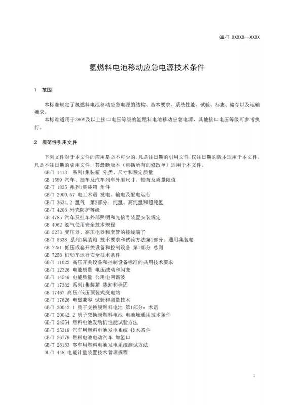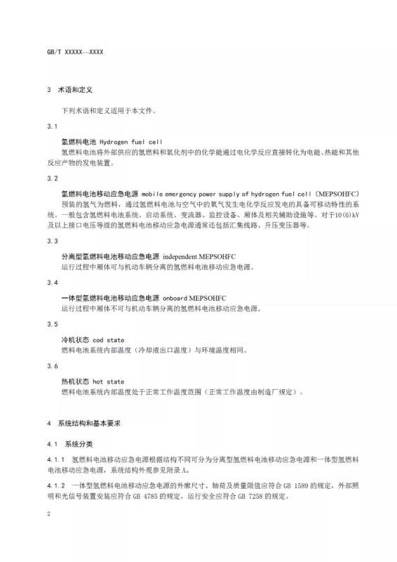 《氫燃料電池移動(dòng)應(yīng)急電源技術(shù)條件》標(biāo)準(zhǔn)征求意見稿
