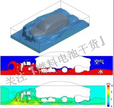 為定量驗(yàn)證水面行駛所需耐水壓力,豐田汽車公司進(jìn)行了實(shí)車試驗(yàn)和仿真模擬工作。在驗(yàn)證仿真結(jié)果與實(shí)際測(cè)量結(jié)果關(guān)聯(lián)性緊密后,仿真模擬結(jié)果表明,燃料電池堆的每個(gè)部分都達(dá)到了所需的防水性能。