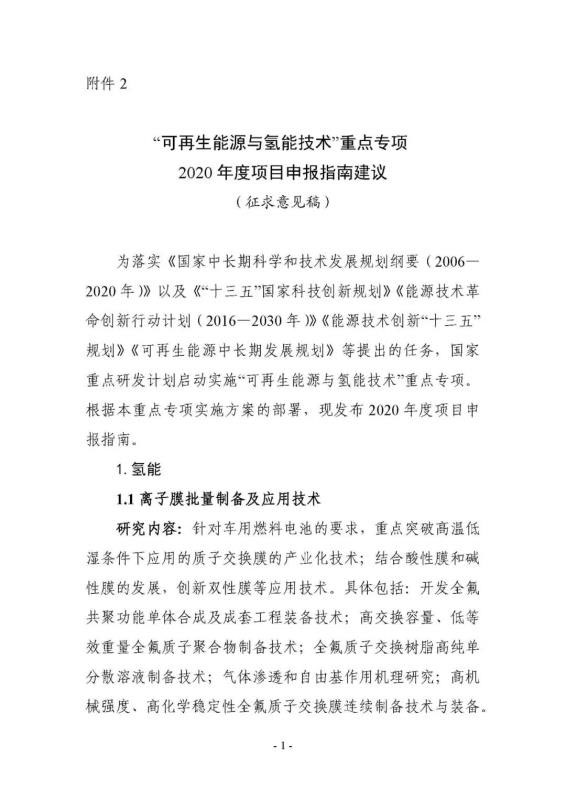 “可再生能源與氫能技術(shù)”重點(diǎn)專項(xiàng)2020年度項(xiàng)目申報(bào)指南建議