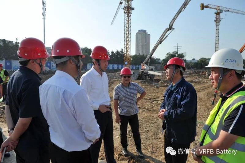 中國(guó)儲(chǔ)能網(wǎng)訊:9月25日下午15時(shí)30分,大連市副市長(zhǎng)靳國(guó)衛(wèi)來(lái)到熱電集團(tuán)恒流儲(chǔ)能有限公司,對(duì)建設(shè)中的大連液流電池儲(chǔ)能調(diào)峰電站國(guó)家示范項(xiàng)目進(jìn)行實(shí)地調(diào)研。公司黨委書記、董事長(zhǎng)邵陽(yáng),黨委副書記、總經(jīng)理兼恒流公司董事長(zhǎng)田魯煒,紀(jì)委書記宋宇賓,恒流公司總經(jīng)理梁立中等一同參與調(diào)研。在恒流項(xiàng)目施工現(xiàn)場(chǎng),邵陽(yáng)董事長(zhǎng)匯報(bào)了項(xiàng)目目前施工進(jìn)展情況及下階段工作部署。
