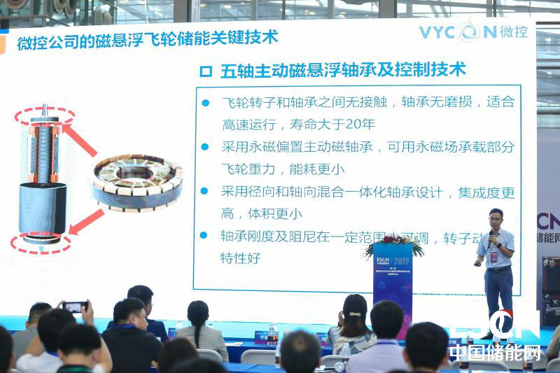 沈陽(yáng)微控新能源技術(shù)有限公司物理儲(chǔ)能技術(shù)研究院院長(zhǎng)江衛(wèi)良先生,于研討會(huì)首日做了題為《飛輪儲(chǔ)能技術(shù)在電力系統(tǒng)中的應(yīng)用》的主題報(bào)告。江衛(wèi)良院長(zhǎng)在報(bào)告中介紹了飛輪儲(chǔ)能技術(shù)的基本原理與發(fā)展?fàn)顩r,詳細(xì)介紹了微控新能源磁懸浮飛輪儲(chǔ)能產(chǎn)品的關(guān)鍵技術(shù)與產(chǎn)品,重點(diǎn)介紹了飛輪儲(chǔ)能技術(shù)在電力系統(tǒng)中的應(yīng)用,提出了混合儲(chǔ)能的創(chuàng)新解決方案。