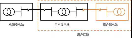 2018年以來,部分發(fā)達(dá)地區(qū)的電網(wǎng)企業(yè)將投資界面推到了用戶紅線內(nèi),中壓用戶不再需要自行建設(shè)變電站或者環(huán)網(wǎng)柜(僅需提供場(chǎng)地),接電成本降到了0。下圖是中壓用戶供電設(shè)施在此種情況下的投資界面劃分方式: