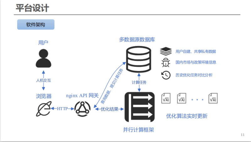 我們是做云平臺(tái)的評(píng)估軟件,希望有共享數(shù)據(jù)庫(kù)的功能,包括儲(chǔ)能的壽命模型,支持客戶上傳和共享。這是我們的軟件架構(gòu),時(shí)間有限我不詳細(xì)展開講。
