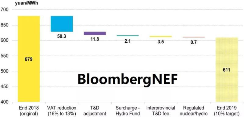 政策:2019年3月,國(guó)務(wù)院總理李克強(qiáng)在作政府工作報(bào)告時(shí)指出,一般工商業(yè)平均電價(jià)將再降低10%。本輪降價(jià)是2018年電價(jià)下調(diào)以來的第二次降價(jià)。(2018年電價(jià)下調(diào)的詳細(xì)信息,請(qǐng)見BNEF上一年度的相關(guān)報(bào)告。)