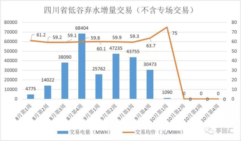 不過這些售電公司在10月份可能笑不出來了。進(jìn)入10月,四川省低谷棄水交易突然進(jìn)入“寒冬”。除第一周有極少量電量成交,且價格頂上最高限價0.075元/千瓦時外,其他三周均無電量成交。