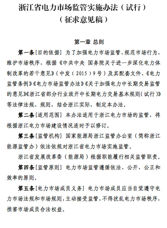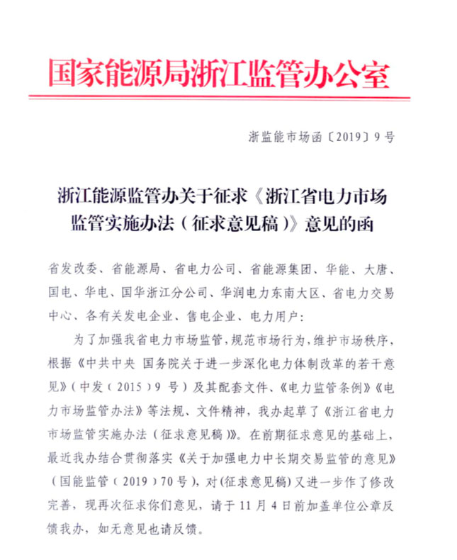 中國儲能網(wǎng)訊:近日,浙江能源監(jiān)管辦關(guān)于征求《浙江省電力市場監(jiān)管實(shí)施辦法(征求意見稿)》意見的函。