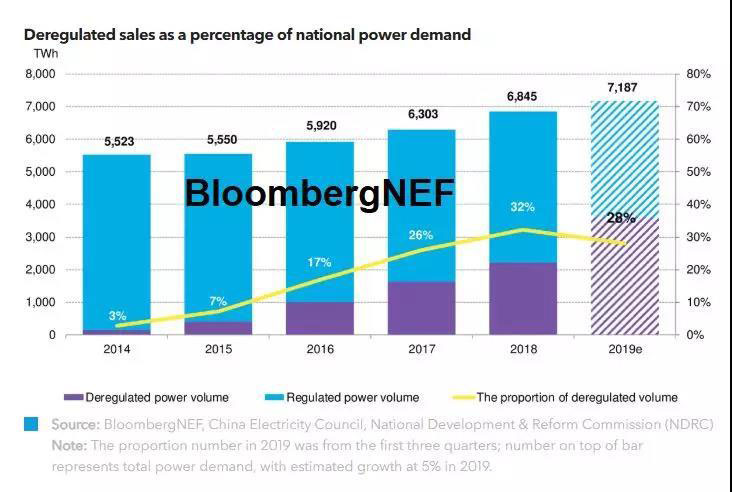到2018年,全國(guó)全社會(huì)用電量當(dāng)中已有32%實(shí)現(xiàn)了市場(chǎng)化(即電價(jià)不采用政府指定的目錄電價(jià)),但仍由于種種原因而低于預(yù)期的40%目標(biāo)。為了加速市場(chǎng)化進(jìn)程,故決定改革固定的煤電標(biāo)桿電價(jià)。