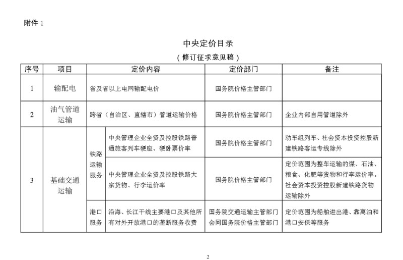 附件:1.《中央定價(jià)目錄》(修訂征求意見稿)