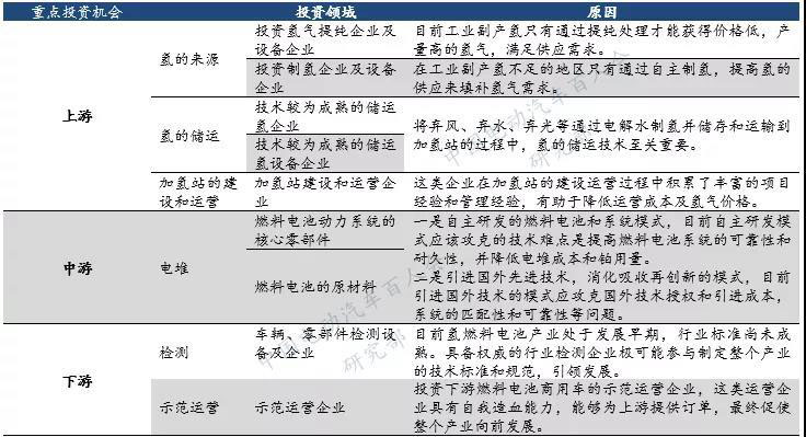 * 圖表4 氫能及相關(guān)產(chǎn)業(yè)投資機會匯總