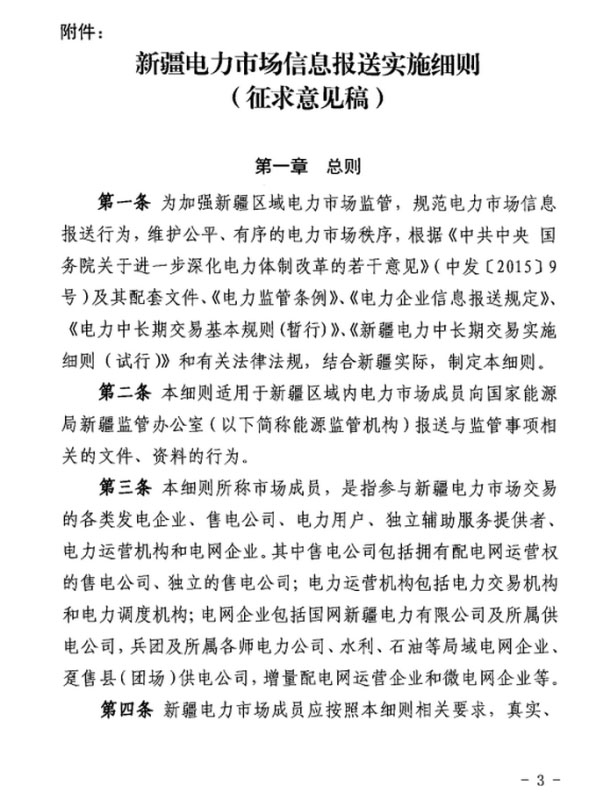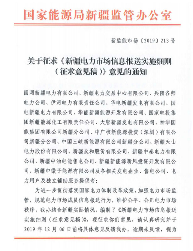 《新疆電力市場信息報送實施細(xì)則(征求意見稿)》印發(fā)