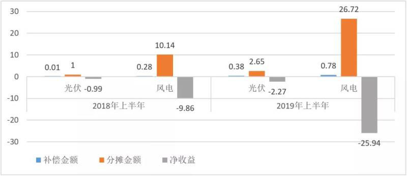 全國光伏、風(fēng)電電力輔助服務(wù)補償費用與分攤情況(億元)