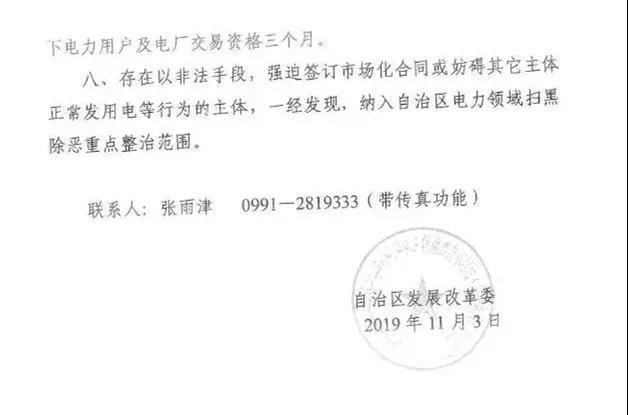 (六)嚴(yán)禁各市場(chǎng)主體對(duì)已簽訂交易協(xié)議的電量再次簽訂另外的交易協(xié)議,尤其是一個(gè)企業(yè)就同一交易電量與兩家及以上售電公司簽訂“代理或打捆”協(xié)議,若出現(xiàn)此類情況將對(duì)相應(yīng)市場(chǎng)主體進(jìn)行通報(bào),視情節(jié)輕重取消涉及相應(yīng)市場(chǎng)主體本年度直接交易資格;若有關(guān)市場(chǎng)主體再次發(fā)生類似事件,將取消其直接交易主體資格,情節(jié)嚴(yán)重者將被列入“涉電力領(lǐng)域失信聯(lián)合懲戒對(duì)象名單”。