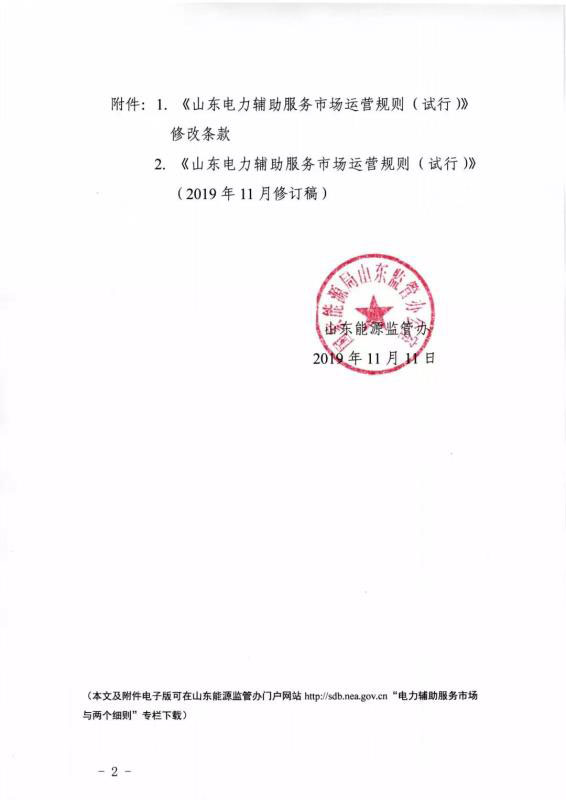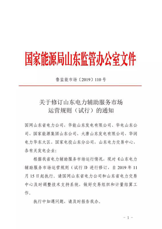 11月11日,山東能監(jiān)辦印發(fā)《山東電力輔助服務市場運營規(guī)則(試行)》2019年11月修訂稿,修訂版本的運營規(guī)則將于11月15日起正式執(zhí)行。