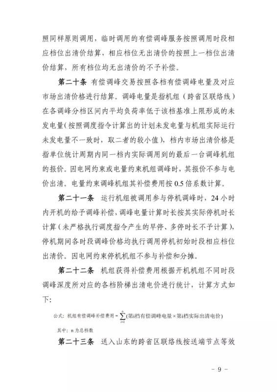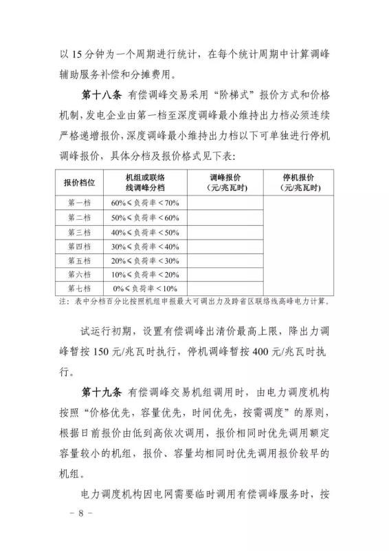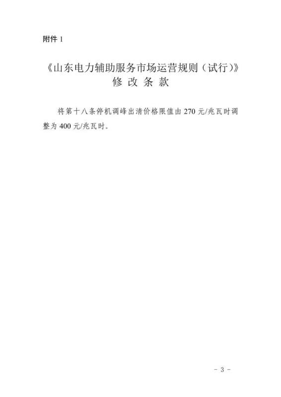 這是今年內山東能監(jiān)辦對電力輔助服務市場運行規(guī)則進行的第二次修訂。相比2019年3月修訂版,此次修訂版本提高了停機調峰出清價格限值,將其由270元/MWh調整為400元/MWh。