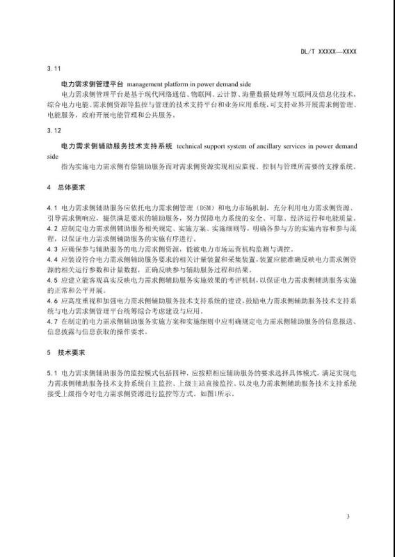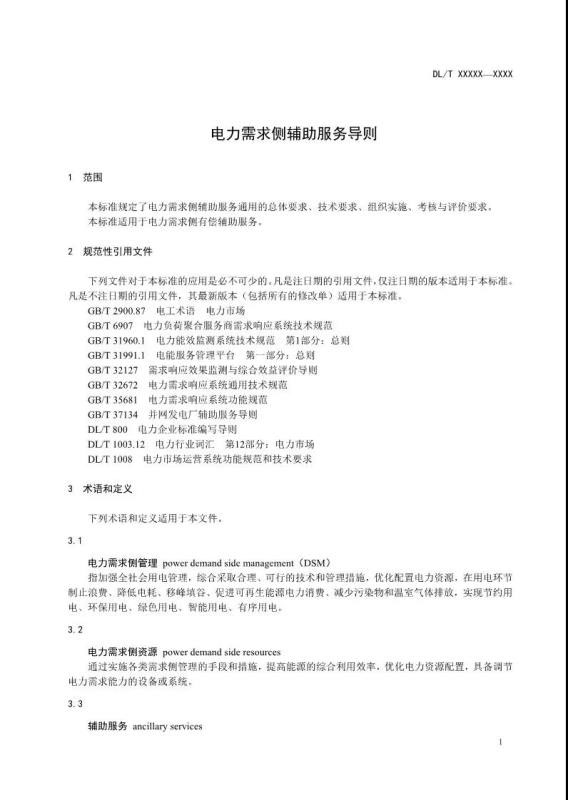 本標(biāo)準(zhǔn)規(guī)定了電力需求側(cè)輔助服務(wù)通用的總體要求、技術(shù)要求、組織實(shí)施、考核與評價要求;適用于電力需求側(cè)有償輔助服務(wù)。