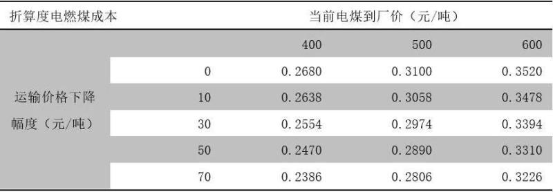 表3 運(yùn)輸環(huán)節(jié)價(jià)格下降有望帶動(dòng)度電成本(燃煤+其他)下降0.5-1分/kwh