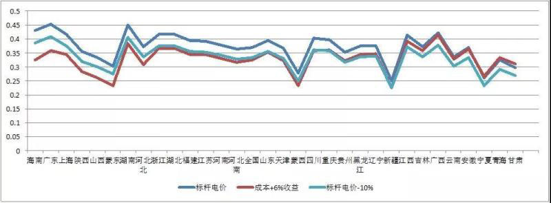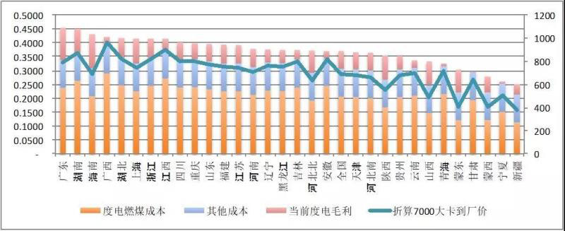 扣除不具有代表性的海南、上海、云南、四川、青海以外,電力需求旺盛的廣東、湖南、煤炭資源豐富的陜西、山西、蒙東、河北北部標(biāo)桿電價(jià)具有較超過(guò)全國(guó)平均值以上的下調(diào)空間,相比,電價(jià)較低的新疆、寧夏、甘肅等地和煤電到廠價(jià)較高的江西、廣西、安徽等地在現(xiàn)有格局中電價(jià)下降空間所剩無(wú)幾。
