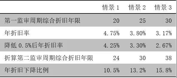 根據(jù)現(xiàn)行《輸配電定價(jià)成本監(jiān)審辦法(試行)》,輸配電項(xiàng)目主要資產(chǎn)如輸配電線路、變電配電設(shè)備等,平均折舊年限15-35年。假設(shè)殘值率5%,第一成本監(jiān)審周期綜合折舊年限為25年,年折舊率下降0.5%將使得綜合折舊年限延長(zhǎng)至30年左右,折舊降幅可達(dá)13%,以折舊在總成本中占比50%來(lái)匡算,則可為總成本下降貢獻(xiàn)約7%的額度。