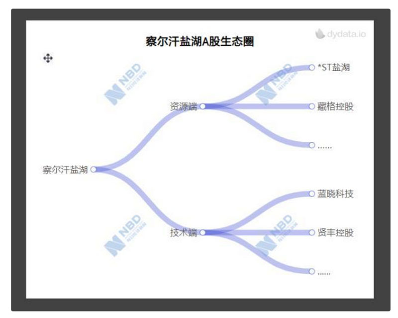 《每日經(jīng)濟(jì)新聞》記者梳理發(fā)現(xiàn),僅圍繞著這兩家公司的鹽湖提鋰,在A股市場便聚集了一個(gè)“察爾汗鹽湖生態(tài)圈”。