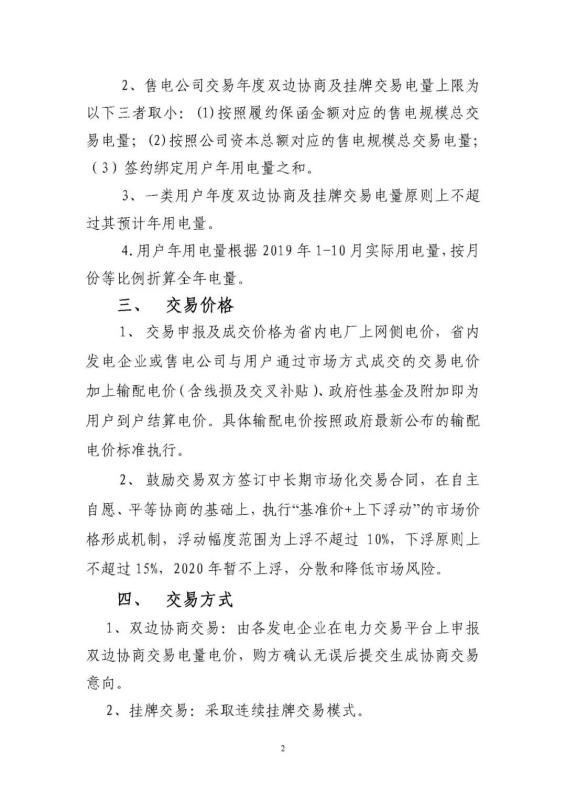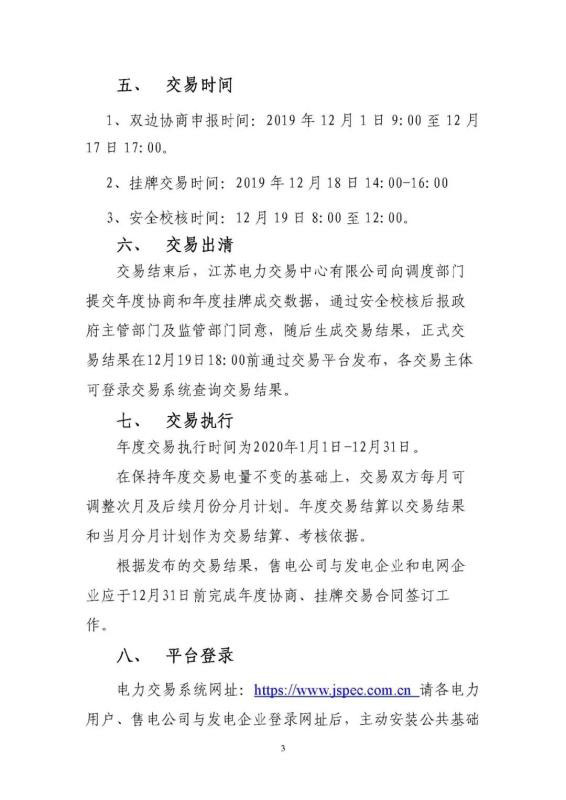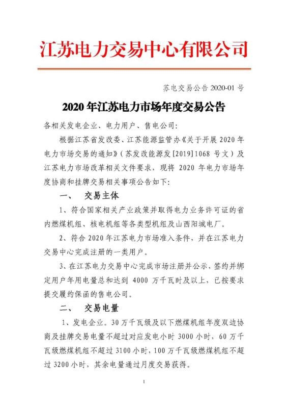 2020年江蘇電力市場年度交易公告