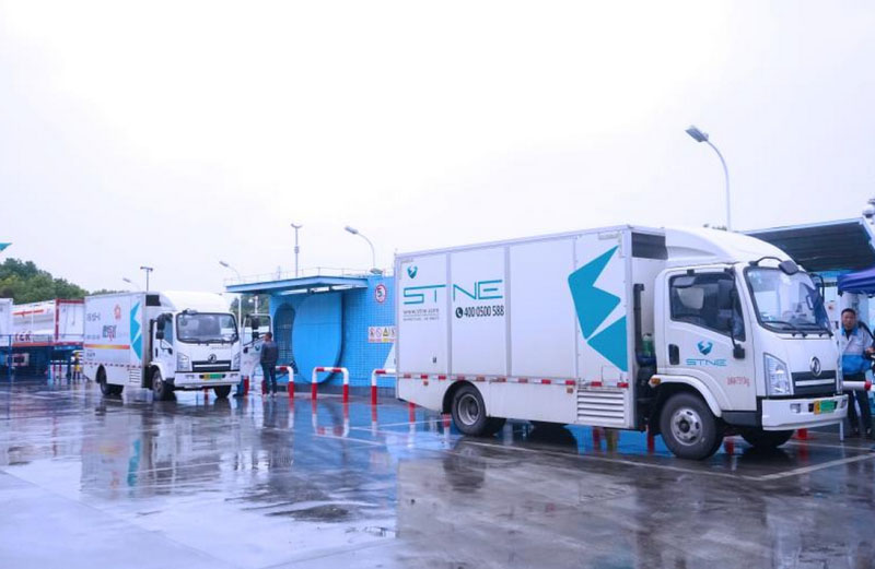 氫燃料電池物流車隊在上海嘉定江橋加氫站排隊加氫。