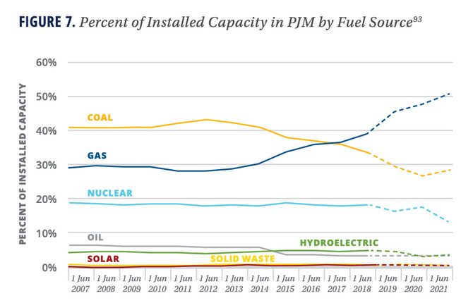 盡管太陽能和儲(chǔ)能現(xiàn)在的成本與新的天然氣發(fā)電相比具有競(jìng)爭(zhēng)力,但美國(guó)過?;茉窗l(fā)電為天然氣發(fā)電設(shè)施的建設(shè)與運(yùn)營(yíng)提供了巨大的動(dòng)力。據(jù)彭博社報(bào)道,過去兩年,PJM地區(qū)的天然氣發(fā)電量增加了11GW,并且計(jì)劃再增加34GW。GridStrategies公司的調(diào)查報(bào)告中的圖表說明了這種動(dòng)態(tài)性。