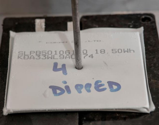 考慮到這個問題,該大學(xué)的研究人員與來自捷豹路虎的工程師合作,利用液氮進(jìn)行快速冷凍,然后將鋰離子電池存放兩周。一旦這些電池解凍,發(fā)現(xiàn)冷凍過程并沒有影響它們的能量或使用壽命。此外,即使用釘子穿過這些電池也不會發(fā)生火災(zāi)或爆炸。