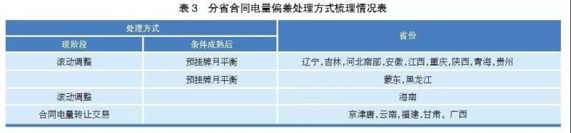 對合同電量偏差處理,各省根據(jù)市場化電量份額的不同處理方式不盡相同。市場化電量份額達(dá)到一定比例時,主要采用預(yù)掛牌月平衡偏差方式,市場化初級階段則主要采用滾動調(diào)整方式、合同電量轉(zhuǎn)讓交易方式等。