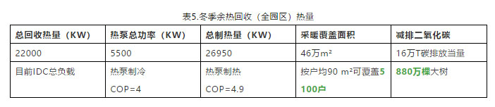 若考慮全年余熱回收,將夏季回收熱用于民用熱水及周邊公建需求,冬季將數(shù)據(jù)中心全部熱源用于民用采暖,由此減少的能耗極為可觀,同時(shí)采用此方案將減少制冷系統(tǒng)部分運(yùn)行費(fèi)用及園區(qū)辦公樓采暖費(fèi)用,累加售賣(mài)出去的余熱費(fèi)用,收益將極為可觀。在開(kāi)展社會(huì)公益的同時(shí),也增加了執(zhí)行者的收益,讓綠色環(huán)保深入數(shù)據(jù)中心行業(yè)內(nèi)。