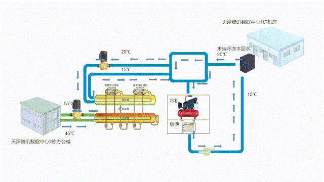 圖1.騰訊天津數(shù)據(jù)中心余熱回收系統(tǒng)圖