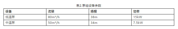 選取DC1棟冷凍系統(tǒng)末端回水為取水口,通過(guò)園區(qū)內(nèi)一段地埋管道輸送到辦公樓冷機(jī)房?jī)?nèi)。在辦公樓冷機(jī)房?jī)?nèi)安裝兩臺(tái)循環(huán)水泵,將20℃冷凍回水送至熱泵機(jī)組,并將熱泵機(jī)組15℃回水送至DC1棟?rùn)C(jī)房。其水泵選型如下: