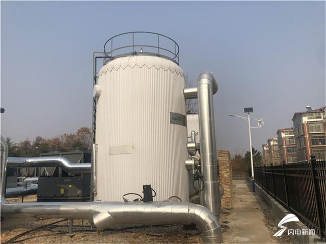 “依托先進技術,金嶺山莊清潔能源冷暖站項目改變了傳統(tǒng)的燃煤供暖方式,能夠綜合利用空氣能、太陽能、生物質(zhì)能、谷電棄電等多種形式的清潔能源,以多種能源方式互為補充,智慧存儲調(diào)度,零排放、零污染,實現(xiàn)綠色智能供暖。”陳輝說,項目建在拆除的金嶺山莊供暖鍋爐原址上,總投資1000多萬元,于去年建成,今年進一步改造升級,是威海市首個,也是山東省內(nèi)最大的“儲能+多能互補+智慧能源”清潔能源供暖項目。