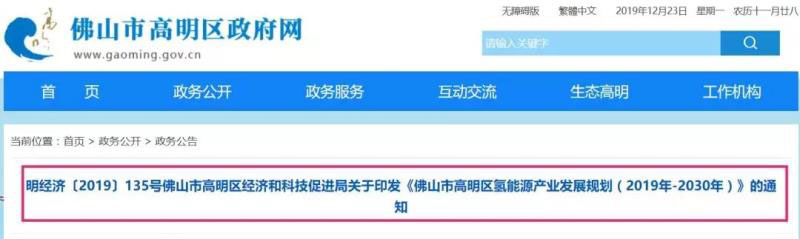 中國儲能網(wǎng)訊:近日,佛山市高明區(qū)經(jīng)濟和科技促進局發(fā)布關于印發(fā)《佛山市高明區(qū)氫能源產(chǎn)業(yè)發(fā)展規(guī)劃(2019年-2030年)》的通知。
