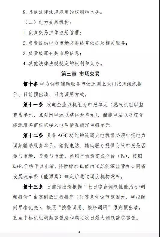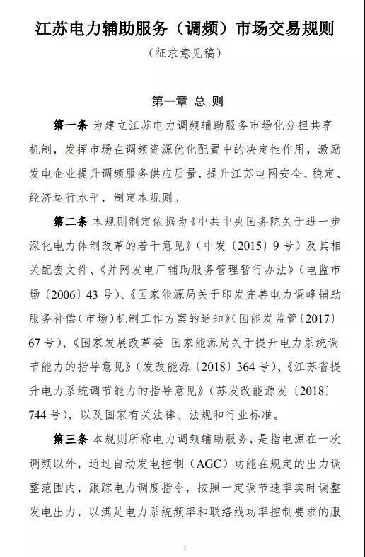 中國儲能網(wǎng)訊:為進(jìn)一步完善江蘇電力輔助服務(wù)補(bǔ)償機(jī)制,發(fā)揮市場在電力調(diào)頻資源優(yōu)化配置中的作用,江蘇能源監(jiān)管辦組織編制了《江蘇電力輔助服務(wù)(調(diào)頻)市場交易規(guī)則(征求意見稿)》,現(xiàn)向社會公開征求意見。