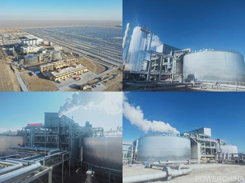 該項目由80個線性菲涅爾太陽能集熱回路,1套儲熱系統(tǒng)(二元熔鹽),1套蒸汽發(fā)生系統(tǒng),1套高溫高壓、一次中間再熱汽輪發(fā)電機系統(tǒng)以及其他輔助設(shè)施組成,配置15小時儲熱,可實現(xiàn)24小時連續(xù)發(fā)電,年發(fā)電量約2.14億千瓦時。項目由敦煌大成聚光熱電有限公司作為建設(shè)單位牽頭建設(shè)、中國電建集團中南勘測設(shè)計研究院有限公司承擔(dān)EPC總承包工作,甘肅光明電力工程咨詢監(jiān)理有限責(zé)任公司負(fù)責(zé)工程監(jiān)理,主要參建單位包含了動力區(qū)建安的山東電力建設(shè)第一工程有限公司、儲熱罐施工的上海藍濱石化設(shè)備有限責(zé)任公司、集熱島施工的蘭州大成科技股份有限公司以及常規(guī)島設(shè)計的西北電力設(shè)計院有限公司。