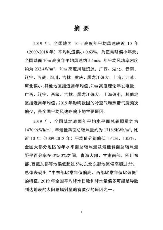 《2019年中國風(fēng)能太陽能資源年景公報(bào) 》全文