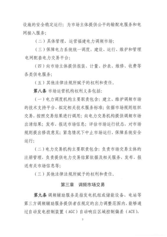 中國儲能網(wǎng)訊:近日,福建能監(jiān)辦發(fā)布《福建省電力調(diào)頻輔助服務(wù)市場交易規(guī)則(試行)(2019年修訂版)》,文件明確鼓勵儲能設(shè)備、電站等以第三方提供調(diào)頻輔助服務(wù),暫定儲能設(shè)備、儲能電站容量不少于一萬千瓦,并參照常規(guī)機組標準參與調(diào)頻市場。