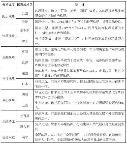 表 典型國(guó)家或地區(qū)能源戰(zhàn)略