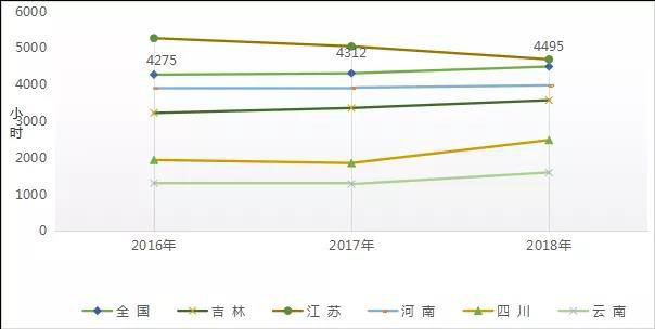 ▲圖5:全國及五個典型省近三年煤電利用小時變化情況