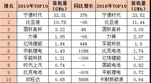 具體來(lái)看,TOP企業(yè)分別為寧德時(shí)代、比亞迪、國(guó)軒高科、力神電池、億緯鋰能、中航鋰電、孚能科技、時(shí)代上汽、比克電池和欣旺達(dá)。