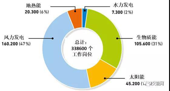 圖7:德國可再生能源領(lǐng)域338600個(gè)工作崗位的分布(2016)