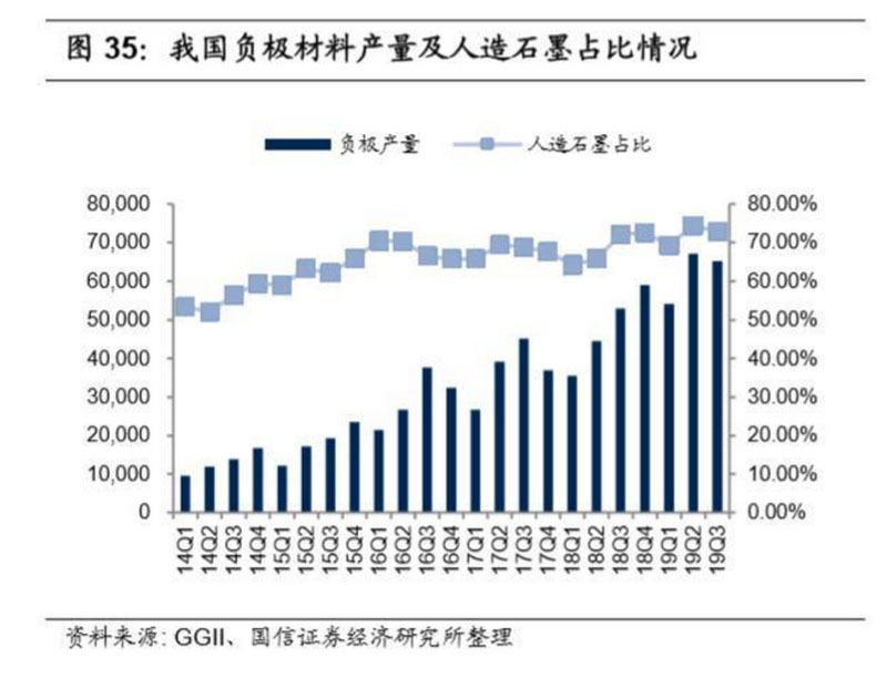 負極材料行業(yè)格局相對穩(wěn)定,人造石墨占比提升明顯,布局石墨化有利于成本 控制。負極材料在電池中成本占比雖然不足 5%,但對電池首次效率和循環(huán)性能 等有較大影響。由于人造石墨在循環(huán)性能和穩(wěn)定性方面更具有優(yōu)勢,得益于動 力電池市場快速增長在負極中的占比提升迅速。負極行業(yè)集中度相對較高,低 端產(chǎn)能價格呈現(xiàn)下跌傾向,石墨化投產(chǎn)制約中高端產(chǎn)能釋放,短期供給仍然較 為緊張,中長期負極廠商擬通過布局石墨化平衡產(chǎn)品價格下行帶來的利潤壓力。 伴隨電池對能量密度以及快充技術(shù)要求提升,中高端負極以及硅碳負極應(yīng)用進 程有望加速。
