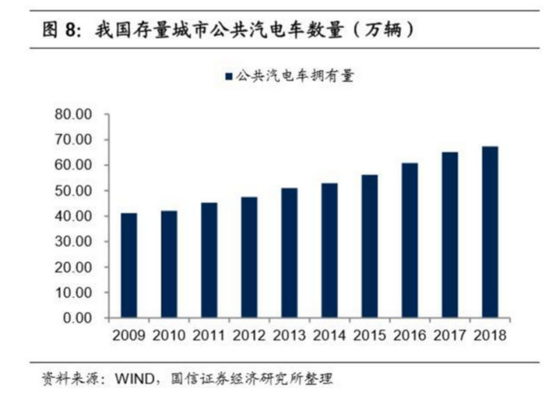 存量出租車、公交車替換大有可為,有望為國內(nèi)新能源汽車銷量貢獻增量。根 據(jù)國家統(tǒng)計局和交通部統(tǒng)計,截至 2018 年我國存量城市出租車數(shù)量為 109.72 萬輛,存量公共汽電車數(shù)量為 67.34 萬輛,2015-2018 年我國新能源客車銷量 53.73 萬輛,按城市公交占比 85%計算,尚有 20 萬輛+的存量替換空間;而出 租車領(lǐng)域,目前除了深圳區(qū)域新能源滲透率較高、北、上、廣等一線城市仍在 快速替代階段。
