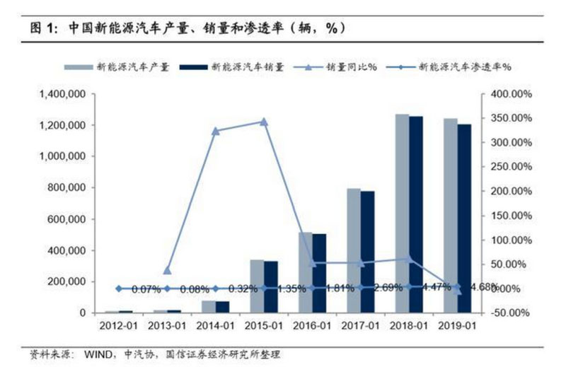 2019 年全年國內(nèi)新能源汽車累計銷售 120.6 萬輛,同比下降 4%,目前新能源 汽車滲透率僅為 4.68%,未來成長空間巨大。受補貼退補和傳統(tǒng)燃油汽車銷量 不佳影響,新能源汽車銷量連續(xù)下滑,根據(jù)中汽協(xié)數(shù)據(jù)統(tǒng)計,截至 2019 年 12 月我國新能源汽車銷量為 120.6 萬臺,同比下降 4%, “補貼退坡+爆款車型斷檔” 是目前國內(nèi)新能源汽車銷量面臨的最大難題。從成長空間看,2019 年新能源汽 車銷量滲透率僅為 4.68%,存量滲透率不足 2%,在此大背景下,未來新能源 汽車成長空間巨大。