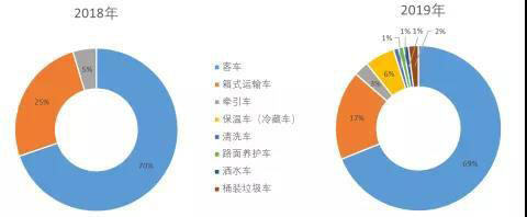 車型也更加豐富。相比2018年和2019年上半年推出的客車、廂式運(yùn)輸車,2019年下半年新推出一系列特定用途的商用車型,包括牽引車、清洗車、路面養(yǎng)護(hù)車、灑水車、垃圾車等,占全部車型的16.7%。