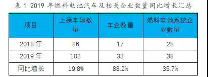 工信部2019年第1批-第11批《新能源汽車推廣目錄車型信息》(下稱目錄)顯示,燃料電池車已達(dá)103款,上榜的整車企業(yè)和燃料電池系統(tǒng)企業(yè)數(shù)量增長較快,同比增長88.2%和35.7%。相關(guān)企業(yè)分布區(qū)域更加廣泛,整車企業(yè)和燃料電池系統(tǒng)企業(yè)分別分布在16和13個(gè)省、直轄市,所在省、直轄市數(shù)量分別增長60%和30%。