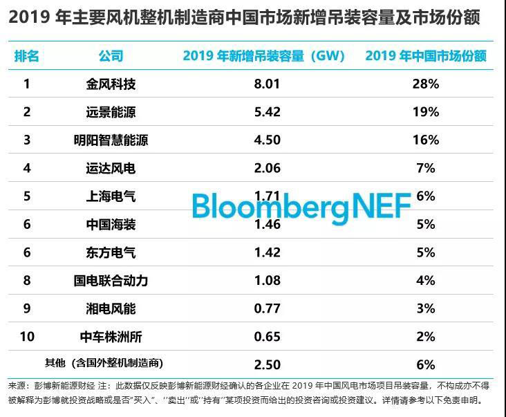 Siemens Gamesa (437MW)、Vestas (283MW), 與GE(210MW),共占3%市場份額,相較于2018下降2個百分點。
