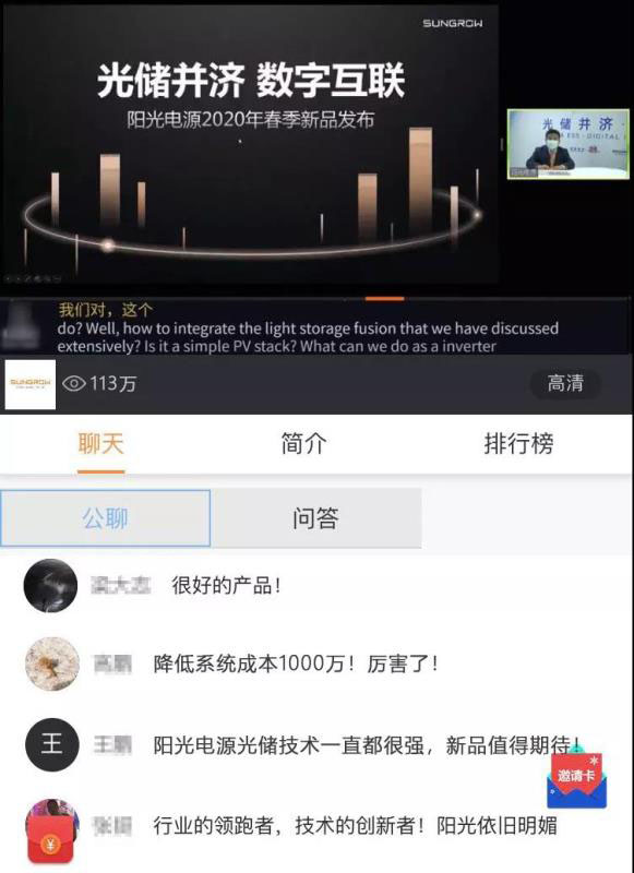 2月14日,“PAT2020愛光伏一生一世 光儲(chǔ)并濟(jì) 數(shù)字互聯(lián)先進(jìn)技術(shù)研討會(huì)”如約面向全球直播。會(huì)上,震撼升級(jí)的集中逆變器SG3125HV從降低度電成本(LCOE)、加強(qiáng)光儲(chǔ)深度融合和提升電網(wǎng)支撐能力入手,直擊平價(jià)上網(wǎng)痛點(diǎn)。
